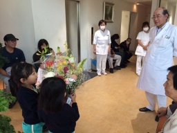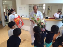 子どもたちから日頃の感謝の気持ちを込めて、手作りのカレンダー等を手渡しました。